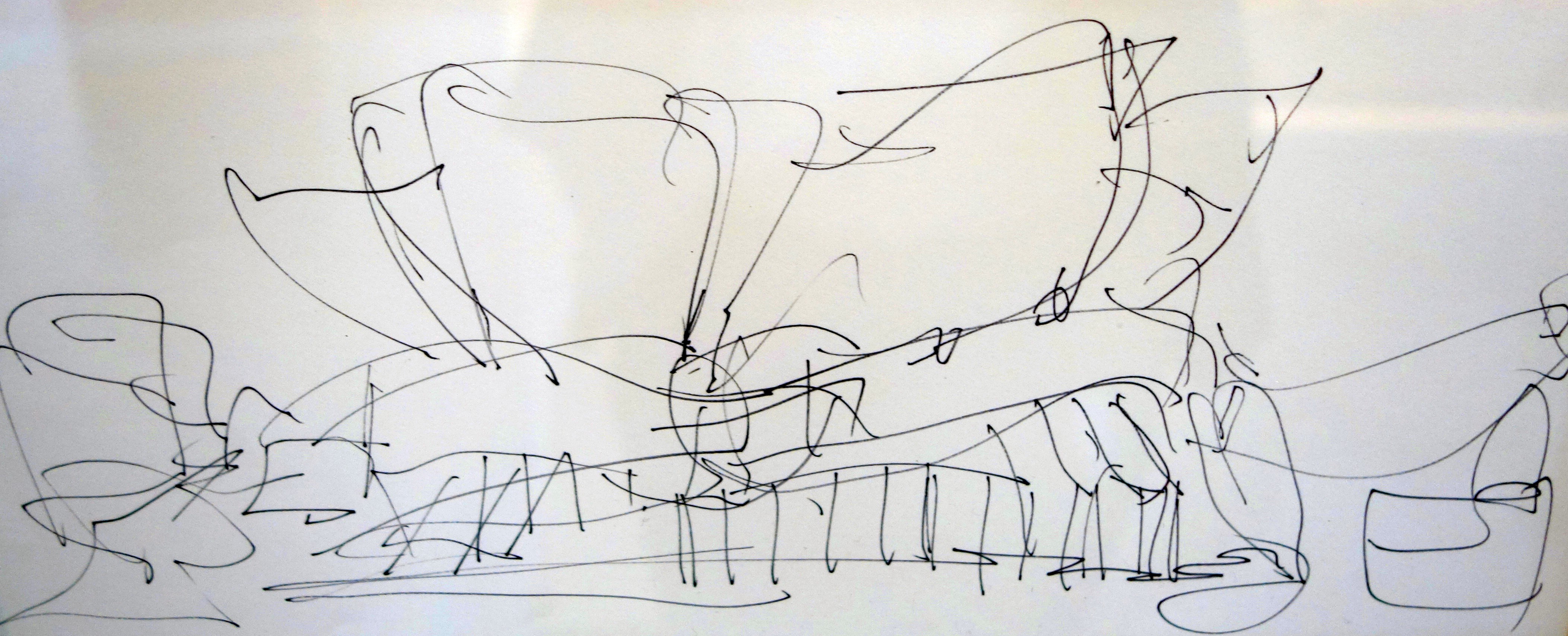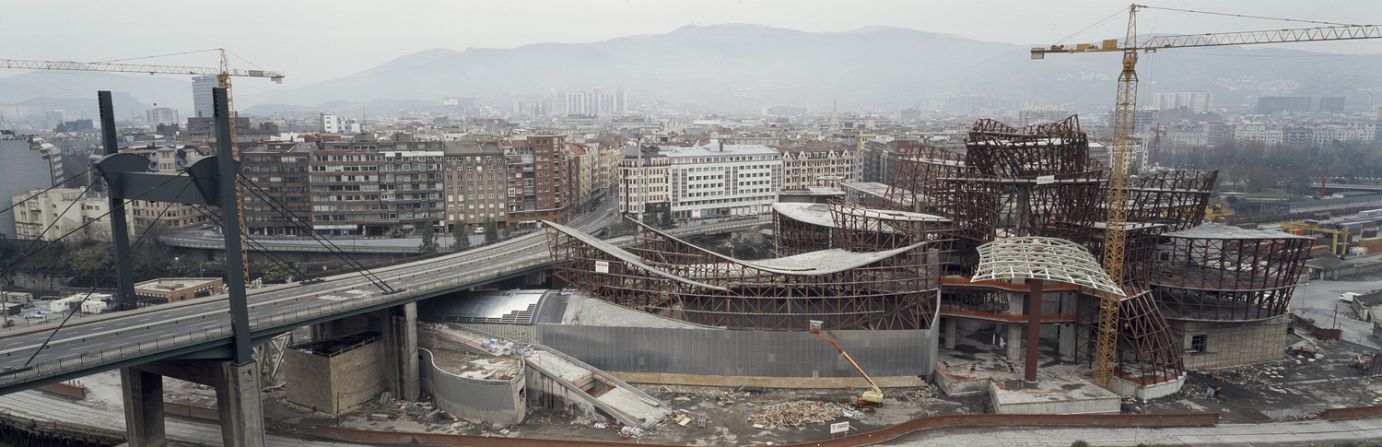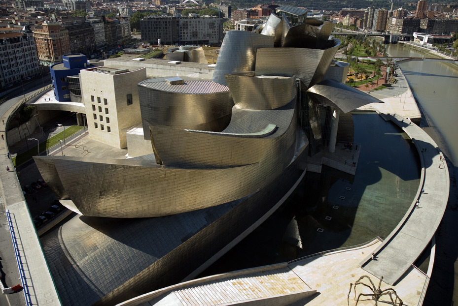 Mondialement connu pour ses créations qui ne peuvent pas laisser indifférentes, Frank Owen Gehry est considéré comme un des architectes les plus appréciés de sa génération. Son œuvre la plus connue est certainement le Musée Guggenheim à Bilbao. Confrontée à une crise sans précédent, la capitale du Pays basque fait le pari de sa revitalisation par le lancement d’une politique de rénovation urbaine. Frank Gehry implantera le musée sur une friche industrielle, en contrebas d’un pont autoroutier. La maquette de l’exposition traduit parfaitement l’esquisse positionnée en têtière.